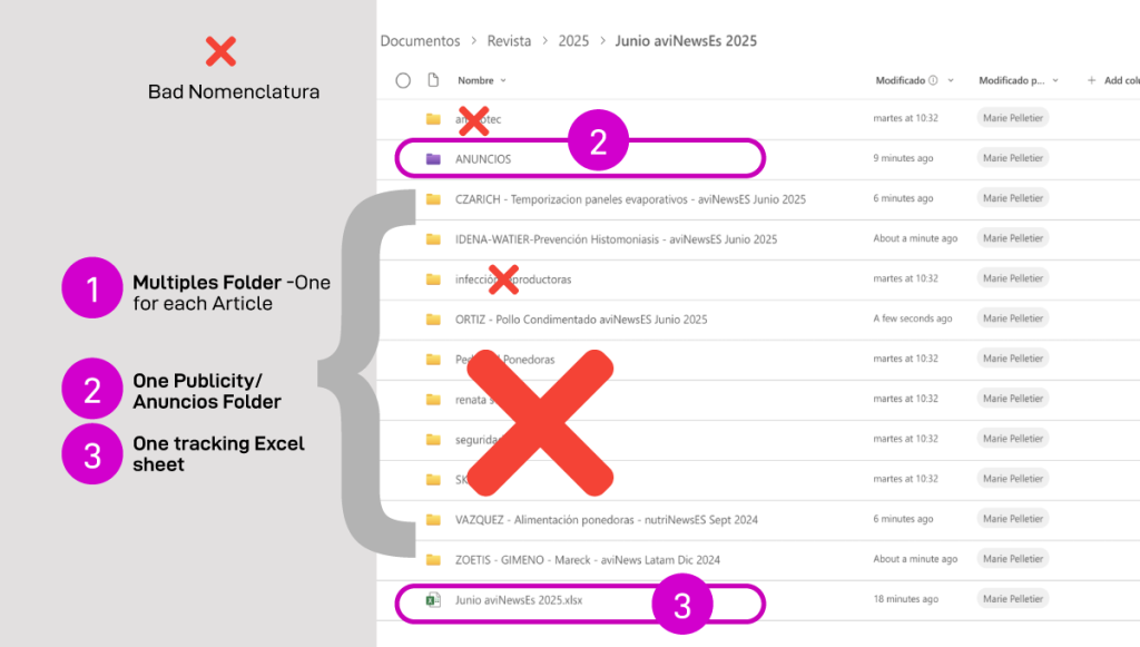 Es totalmente necesario tener una coherencia a la hora de nombrar los artículos tanto desde las carpetas como después en el Excel de Seguimiento y después a la hora de Dar de Alta Tareas de Diseño en la plataforma.